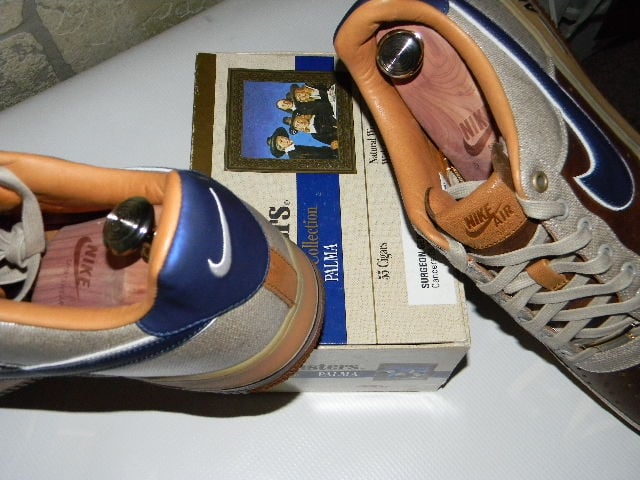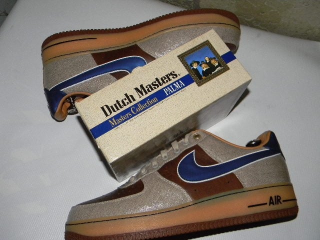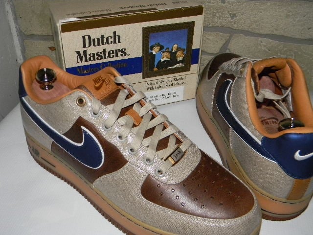 Today, the Nike Air Force 1 Bespoke ‘Dutch Masters’ makes the headlines. Designed by Josh Slovadon, this AF1 features design cues inspired by the Dutch Masters cigar box, with various tones of light and dark brown in both premium leather and canvas uppers. The waxes laces, lace jewel are a must to go with the navy hints all around.