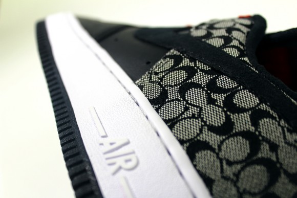 We’ve found a way to stand out fromย the crowd when you decide to rock Coach. Check out the ‘Coach Force 1s.’ a custom Nike Air Force 1 by Groundbreaker Customs, that uses Coach upholstry on a pair of low top sneakers. The rear, heel paneling and tongue are covered in the black and grey Coach pattern, while flairs of red accenting appear throughout the shoes. For added luxury points, the interior is lined with suede. What do you guys think of these customs? Take a closer look at them down below, and be sure to visit the Groundbreaker Customs site if you’re interested in copping!