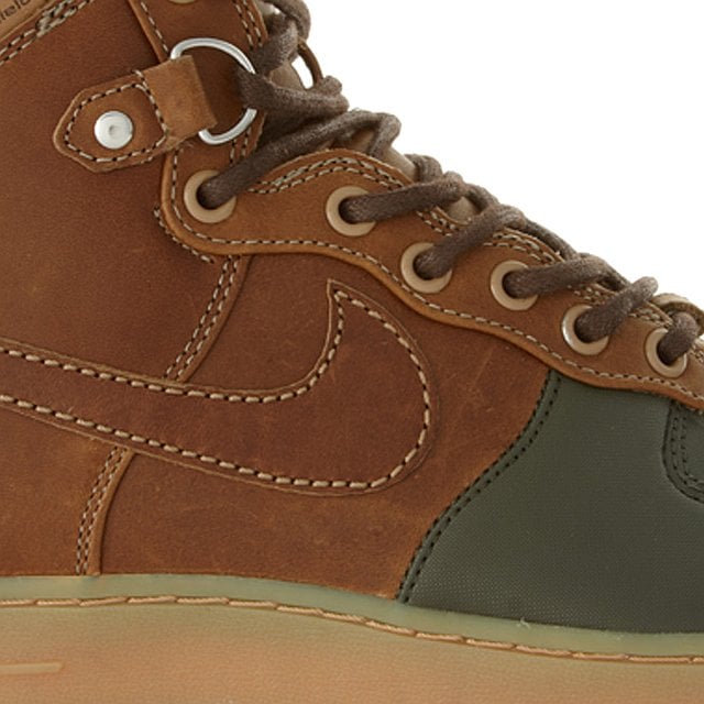 This beechtree/dark army look echoes that of a classic duckboot, with a dark brown leather upper and a dark army toebox and mudguard. ย Like other AF1 Duckboots, these feature a waterproof upper, warm wool lining, d-ring lacing, waxed cotton laces, and a heavy duty rubber traction outsole.