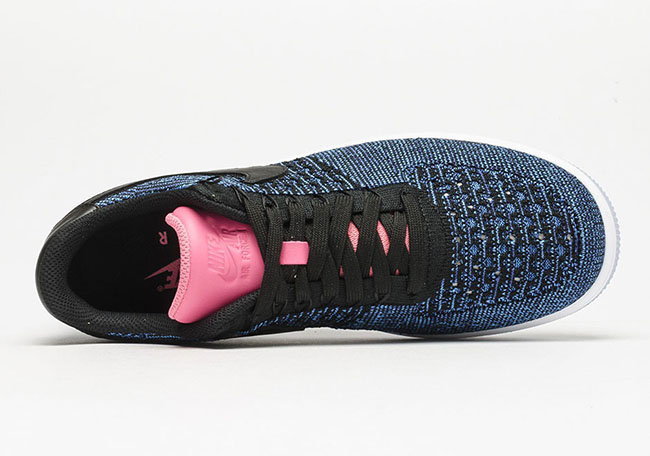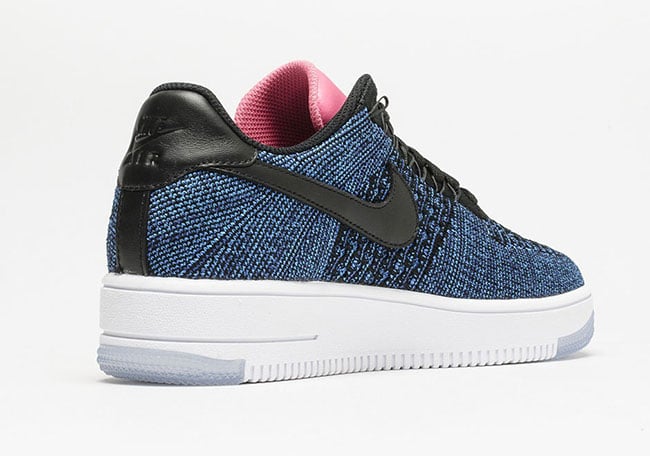 The low top edition of the Nike Air Force 1 Flyknit is dressed in Black, Deep Royal Blue and Digital Pink. As you can see, Deep Royal Blue covers most of the Flyknit while Black is hinted. Black is used once again, this time landing on the Swoosh, tongue and heel which is constructed with leather. Other highlights include Pink on the tongue, White midsole and hints of translucent on the outsole.