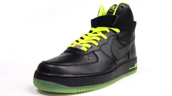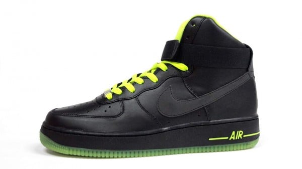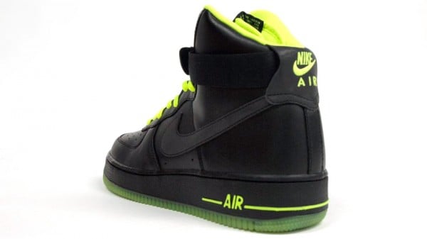 Featuring a black leather upper with a matching rubber midsole, nylon tongue and ankle strap, the high-top AF1 sees Volt applied to the lining, tongue and heel tab branding, midsole branding, laces and semi-translucent rubber outsole.
