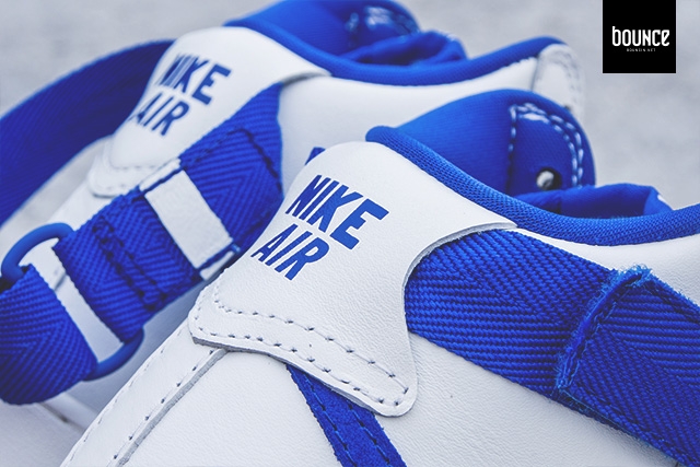 The brand did things right by bringing back the original Nike Air format which hits the heel and tongue. In addition, a full white leather takes over the uppers with royal blue accenting the outsole, swoosh, liner, tongue and strap.