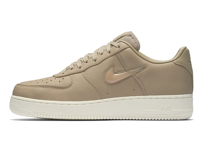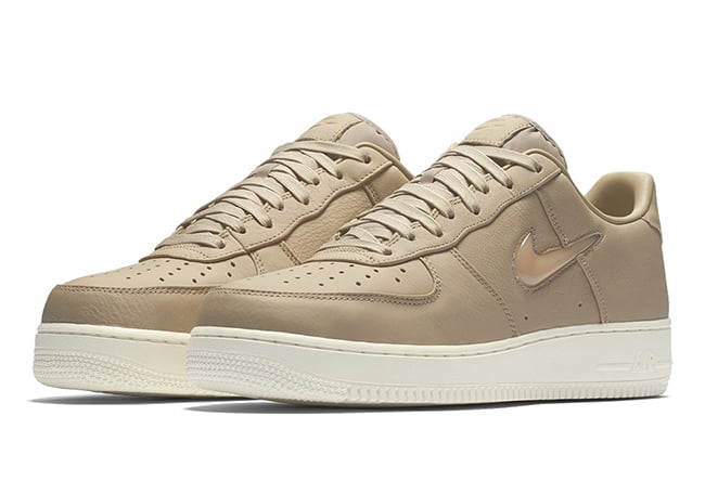 Included in the Jewel Pack is the Nike Air Force 1 Low and the Nike Air Force 1 Mid. Each pair is constructed with premium leather uppers, Nike Jewel Swooshes, White on the midsole and outsole. Two pairs will come in a shade of Tan while one is dressed in the Triple White theme.