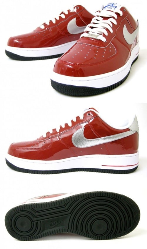 After showing you a single picture of a red patent leather Nike Air Force 1 low prepared for the 2010 NBA All-Star Game, our readers showed a lot of interest. Many are already wondering how they could possibly get their hands on any of these special edition Nike Air Force 1s. While all three low-top Nike Air Force 1s designed for the 2010 All-Star Game sport patent leather uppers, the first one we got a look at sports this red colorway. In fact, perhaps this colorway could be the ones representing for the Western Conference All-Star team, as we’ve seen other Nike silhouettes prepared for the West donning a predominantly red colorway. You can enjoy detailed images of this shoe thanks to an overseas retailer that has actually put a couple of pairs up for sale. However, the pair pictured here reveals a black outsole, as opposed to an icy blue transluscent outsole many of us would have preferred.