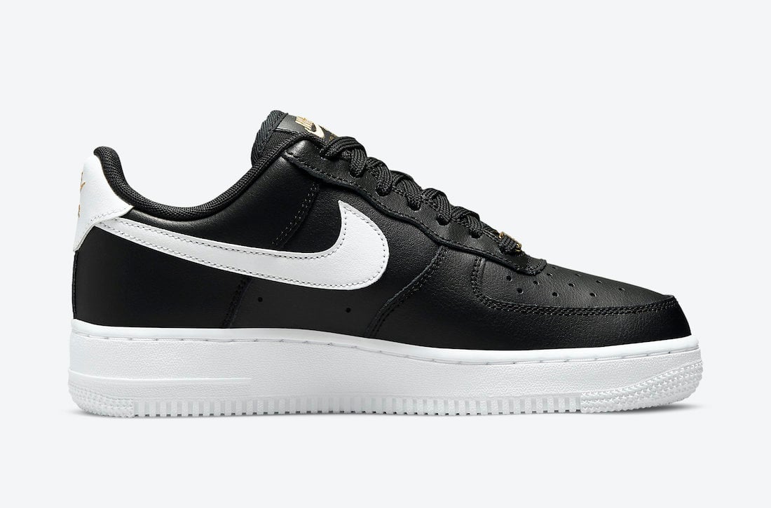 Nike will debut another Air Force 1 Low that will feature a mini Swoosh and comes dressed in Black, Metallic Gold, and White.