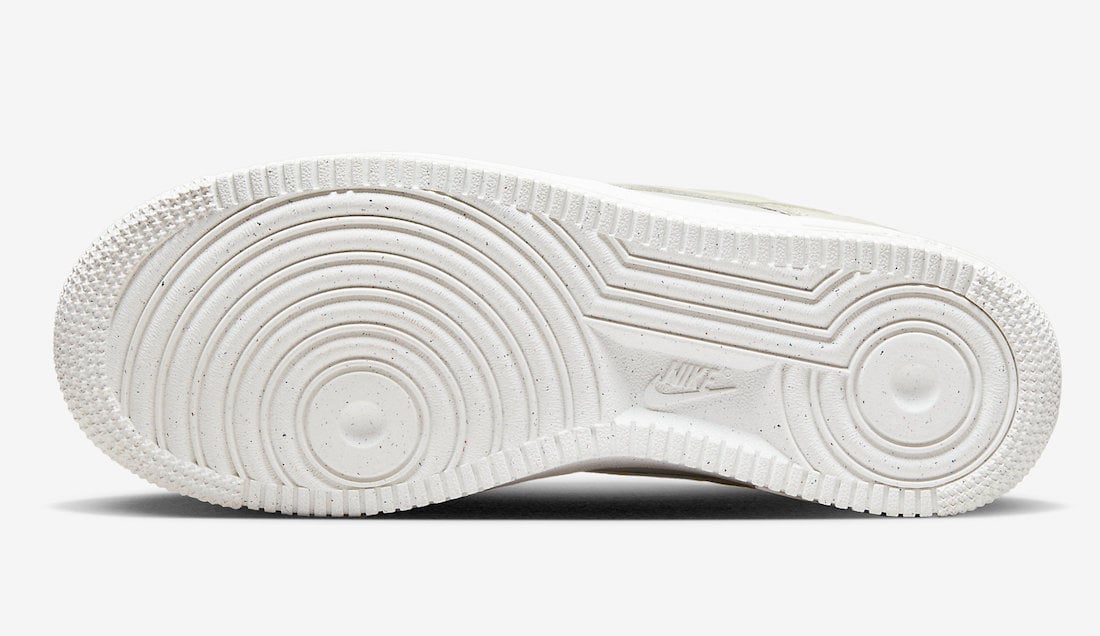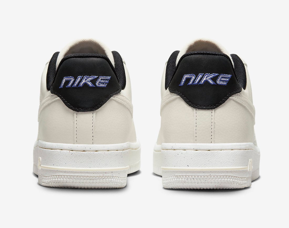 Looking closer, this Nike Air Force 1 Low features leather across the upper and nylon tongues. Highlighted with White on the base and Coconut Milk on the overlays. Next, Black appears on the liner, tongue trimming, and insoles, while a 3D mini Swoosh adorns the tongue labels. Other details include a new Nike logo on the heels and a White speckled rubber sole.