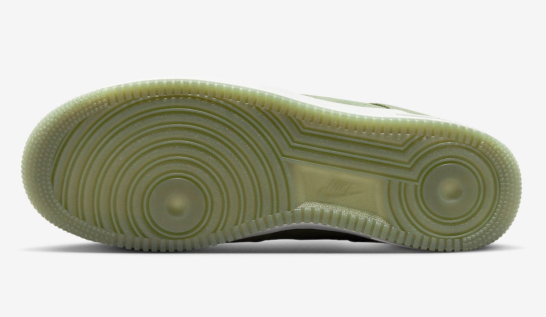 This Nike Air Force 1 Low comes dressed in an Oil Green and Summit White color combination. Constructed with suede across the upper with Oil Green throughout. Highlighting the shoes, we have Jewel Swoosh logos on the panels. Other details include White on the midsole and a semi-translucent Green rubber outsole. Each pair will come with a toothbrush.