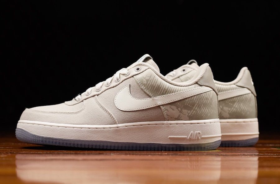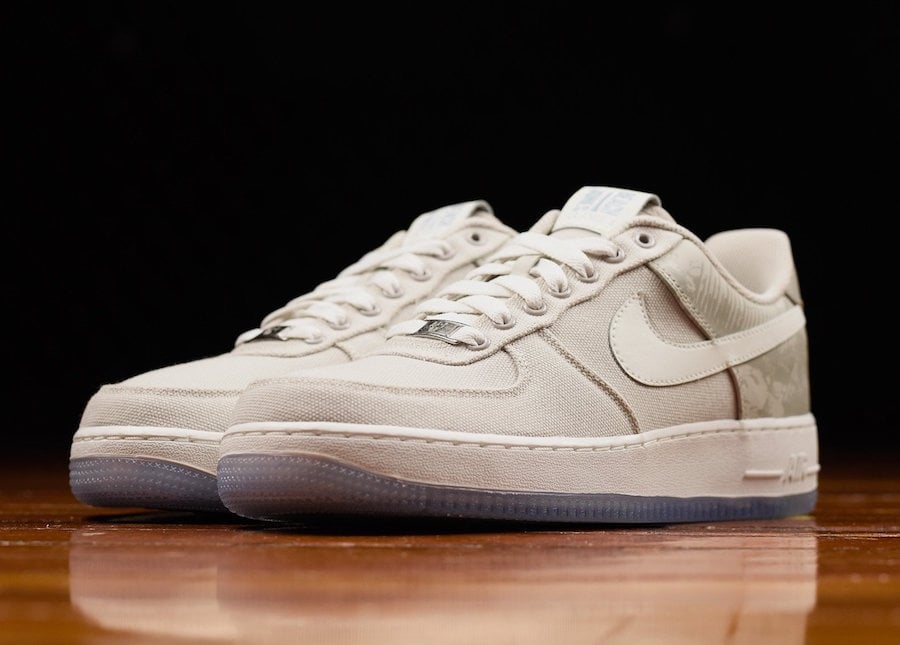 This Nike Air Force 1 Low resembles that of the original release which is dressed in Off-White with canvas. Looking closer you will seeย seaweed print leather that wraps the back heel. In addition we have branded graphics used on the tongue label while the translucent outsole displays a unique graphic.