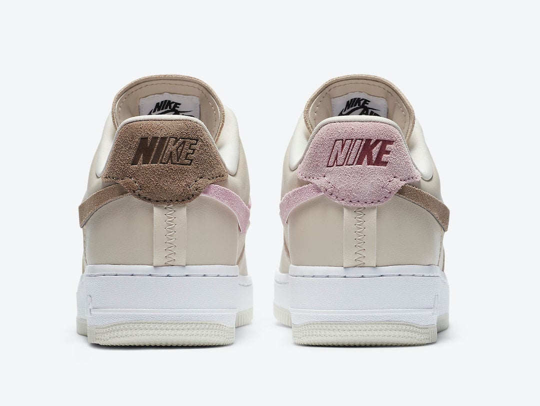 Highlighted in a Light Orewood Brown, Olive Grey and Light Arctic Pink color combination. This Nike Air Force 1 comes with a new look while reconstructed and uses flipped tongue labels. In addition it comes with cracked-like Swoosh logos along with mismatched Brown and Pink detailing. Finishing the look is White on the rubber midsole and Grey on the rubber outsole.