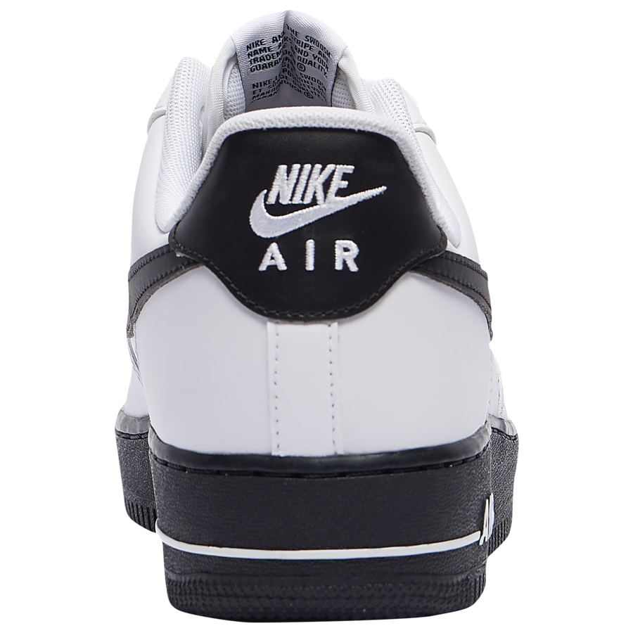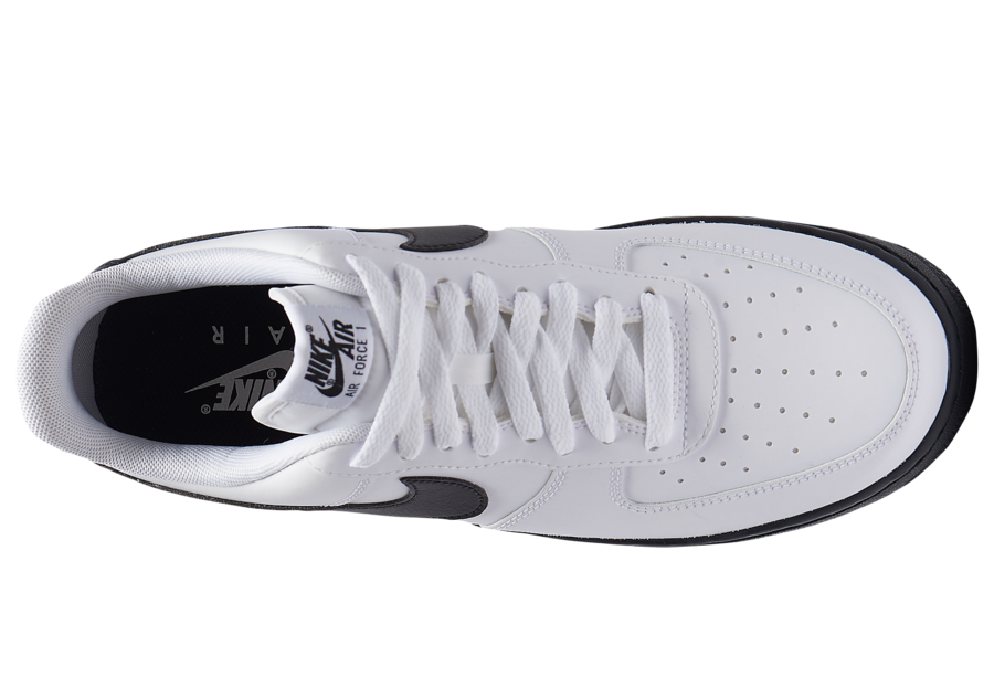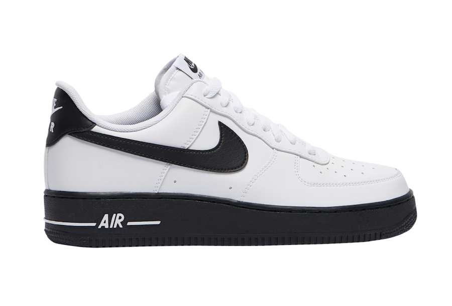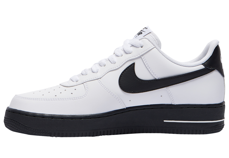Looking closer this Nike Air Force 1 Low comes with White leather across the upper while Black lands on the tongue, heel, Swoosh logos, midsole and rubber outsole. Following we have more White which lands on the โAIRโ seen on the midsole and heel branding.