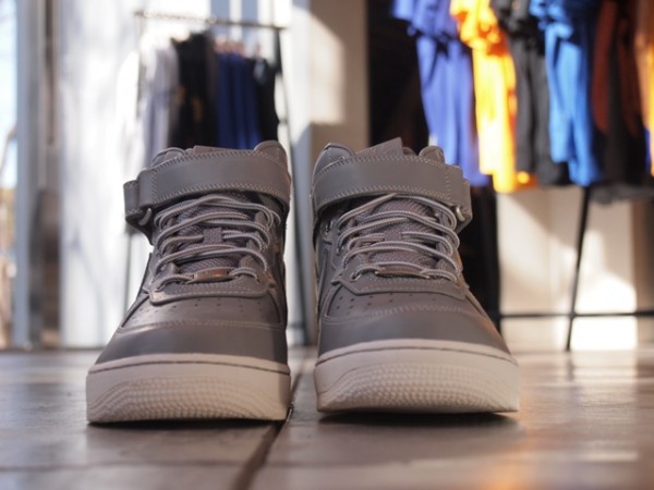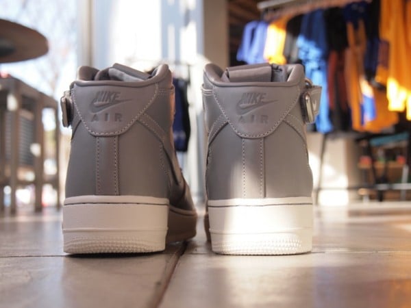 Available as an alternative to the “Olive Workboot” Air Force 1 Mid we showed you earlier today is a grey colorway.