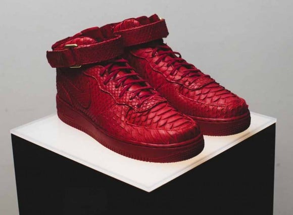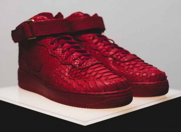 When it comes to customs and the Nike Air Force 1, we have seen our fair share of different looks come to life courtesy of the iconic Nike silhouette. Adding to the impressive list of kicks is this pair of “Red Python” Nike Air Force 1 Mids by The Shoe Surgeon. Created for FourTwoFour on Fairfax, these joints are fully equipped with vibrant red python material flowing throughout its build. Continue reading after the jump for a few more looks and be sure to drop us a line in the comments section below.