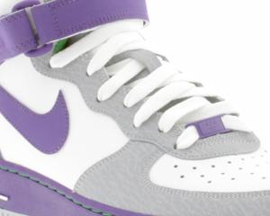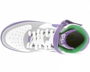 The upper features synthetic leather with a very light cement print on the toe and eyelet panels. Color blocking consists of white, club purple, wolf grey and victory green. If you wear GS size and like the way these grape-like AF1โs look then you are in luck. Click HERE if you are interested in purchasing either for yourself or your other half. These are available starting in a size 4y-7y for the time being.