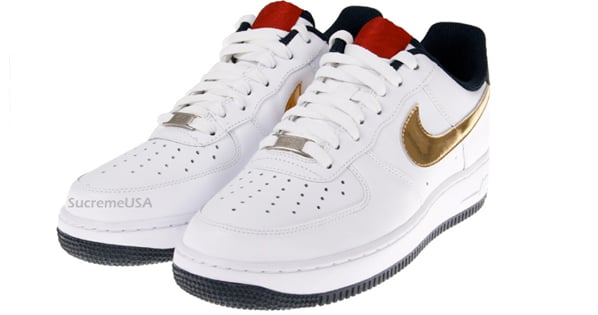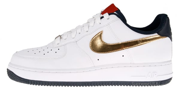 The Olympic games opened a few days ago and the United States have already made their mark in the competition by winning in their sports and breaking records. Here’s the latest Olympic inspired model that features yet another traditional color-way of white, metallic gold and obsidian, hints of red can also be sighted on the tongue. A very clean and simple Nike Air Force 1 despite Nike having released styles on both sides of the spectrum. Now available at select Nike retailers and eBay.