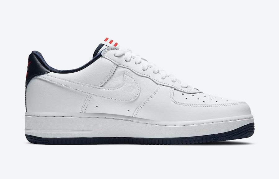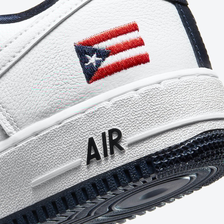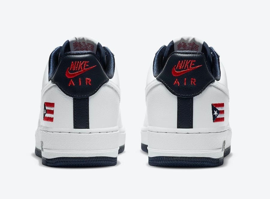 This Nike Air Force 1 comes dressed in a True White, Obsidian and Comet Red color combination. Instead of using the original Navy Swoosh, Nike covers it with White leather. They also feature Navy on the liner instead of Red. In addition we have the Puerto Rico flag by the heel and tongue while a Navy rubber outsole completes the look.