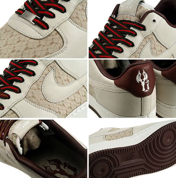 We first previewed this Nike Air Force 1 Supreme designed for Yi Jianlian, the Power Forward for the Milwaukee Bucks. Featuring a Gucci-esque design, this Supreme Air Force 1 sports a tan, brown and white color-way to go along with red and green laces.
