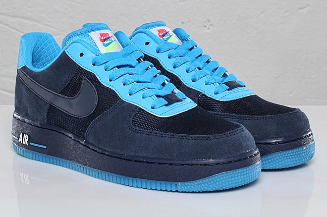 This pack features the Nike Air Force 1 in 3 colorways – Obsidian/Glow Blue, Black/Volt, and Grey/Infrared. All 3 feature similar material and color blocking with soft suede and tough mesh panels and neon 3M accenting for high contrast.