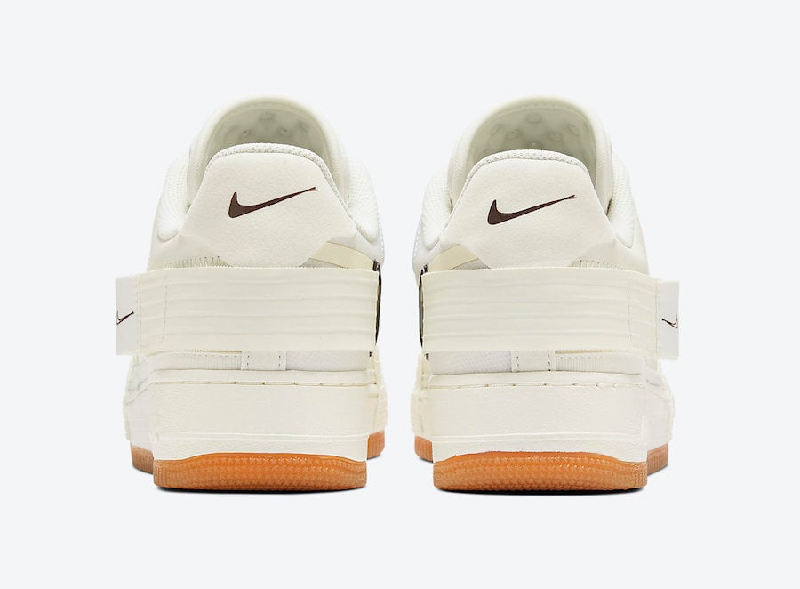 Featuring a Sail, Light Ivory and Earth Brown color combination. Looking closer this Air Force 1 comes with a strap that wraps the heel which is a tribute to the OG Air Force 1 High. On the medial side is a transparent panel with a bit of Blue while a Gum rubber outsole completes the look.