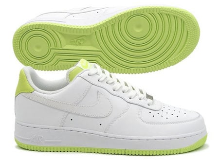 Nike continues to roll out basic designed models with this simple White and Volt Air Force 1. A strong Volt color is used for the sole, heel tab, and on the tag. The shoe lacks a colored swoosh that would suit the shoe better than the solid White and would be more appealing. However, the shoe is pretty clean and basic, but design color maybe a turn off due to its odd color choice and simplicity. Coming soon at Shoe-Planet.