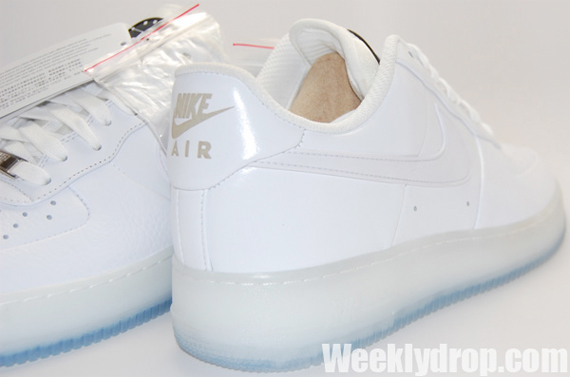 With one colorway already previewed, more of the Nike Air Force 1 x Huarache Hybrid is seen with a more clean appearance. The latest hybrid consists of a solid white upper made of a mixture of premium and patent leather. Found on the midsole is a translucent layer while the sole is also kept clear and icy. The Air Force 1 x Huarache Hybrid will come fully equipped with the Huarache logo on the tongue, sole and insole while Nike is laser etched at the heel. Release is expected for Spring/Summer. Via Weekly Drop.