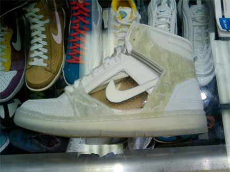 In 2004 Nike released the Espo Nike Air Force II (2) Low, a limited edition Air Force II designed by graffiti artist Espo. Nike has taken the “invisible” concept and used in on a few rare occasions, but look to resurrect this unique design for the upcoming Air Force II High, slated to release next year. Like the original, this Air Force II uses a clear mid-section while keeping the toe leather. The rest of the sneaker is composed of white, blue accents and various materials and an icy outersole. No word on an exact release date, but expect to see this model next year. Via NT.