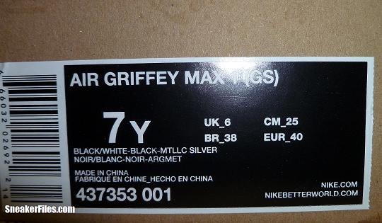 Back in March we saw a GS version of the Nike Air Griffey Max 1 in a Black/ White colorway. Today we bring you some great new images of said sneaker which are set to drop on April 16th.