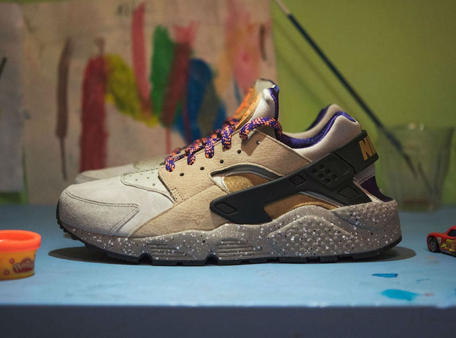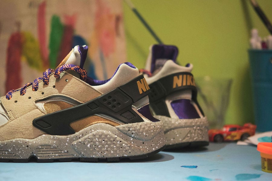 This Nike Air Huarache comes dressed in a Linen, Golden Beige, Black and Court Purple color combination. Constructed with suede and neoprene across the uppers, the heel counter comes in Black while the midsole features a speckled overlay. Finishing the look is Purple on the liner while Black covers the midsole.