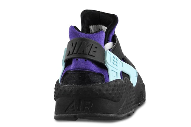 Despite a brief preview last month, here’s a better look at the Nike Air Huarache “Black/White-Court Purple”.