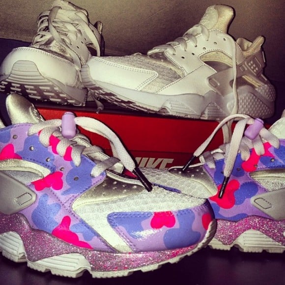 The Nike Air Huarache “Bubble Gum” customs by Fly Kick Customs are feature a camouflage pattern comprised of pink, fuschia and lavender tones, with speckled midsoles to match. Similar to the “Mint Camo,”, the “Bubble Gum” customs keep the anomalous pattern on the toe caps and midfoot overlays. Fuschia speckled pink midsoles add a touch of flare on the bottom, and are squeezed between the bold uppers and white outsole.