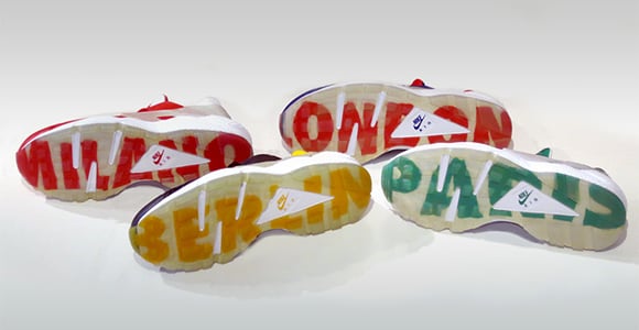 The City Nike Air Huarache pack will represent Paris, Milan, Berlin and London. What we found was odd that New York or Shanghai wasn’t included as they usually are with city packs. Each pair will use colors that represent the city with the name written on the sole which bleeds through the translucent tint.