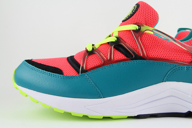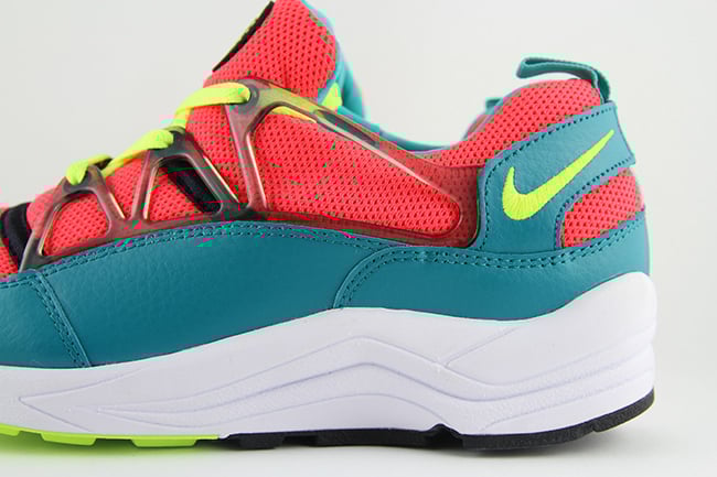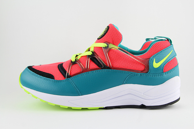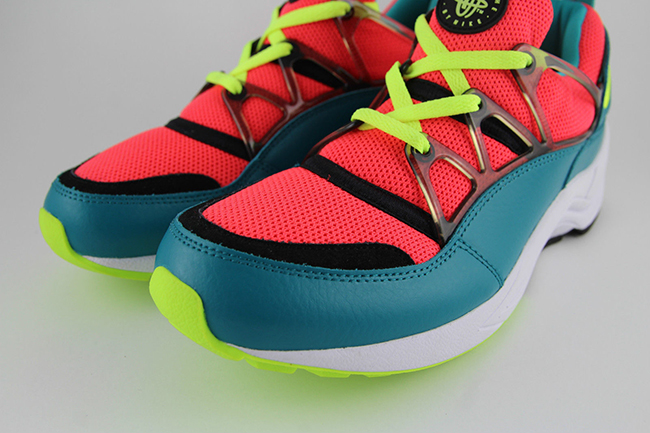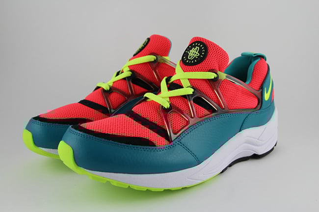 Taking a closer look at the unreleased Air Huarache Light sample, they use a color combination of bright crimson and volt. Bright crimson is used across the mesh uppers and neoprene bootie while turquoise covers the panels. Following is volt which hits the swoosh, outsole and laces.
