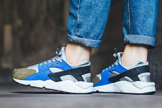 With Fall coming, expect Nike Sportswear to have a full lineup of popular retros suited for the colder weather. One the upcoming widely available releases will be the Nike Air Huarache Run Premium in Olive, Royal and Silver.