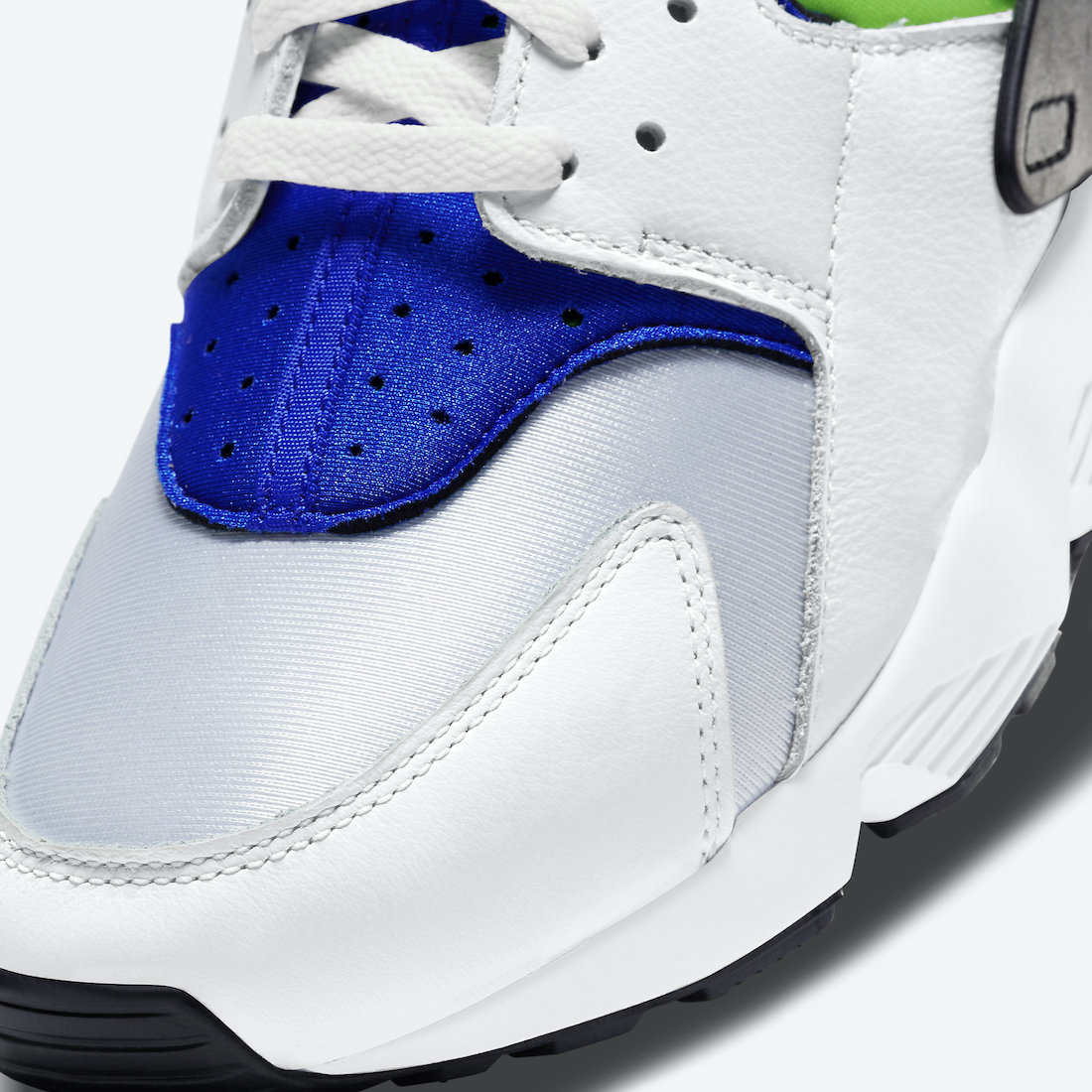 This Nike Air Huarache comes dressed in a White, Scream Green, Royal Blue, and Black color combination. Last released in 2014, the pair features leather and neoprene throughout, while Blue and Green accents cover the bootie and tongue. Finally, a White midsole and a Black rubber outsole finish the look.