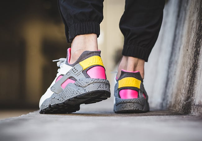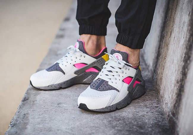 The latest addition to the Nike Air Huarache line will once again feature Pink Blast while Pure Platinum joins in. Featuring Pure Platinum through the uppers while Grey lands on the tongue, heel counter and midsole along with speckled detailing. Highlighting the heel is the use of Yellow while Pink Blast is shown on the neoprene bootie.