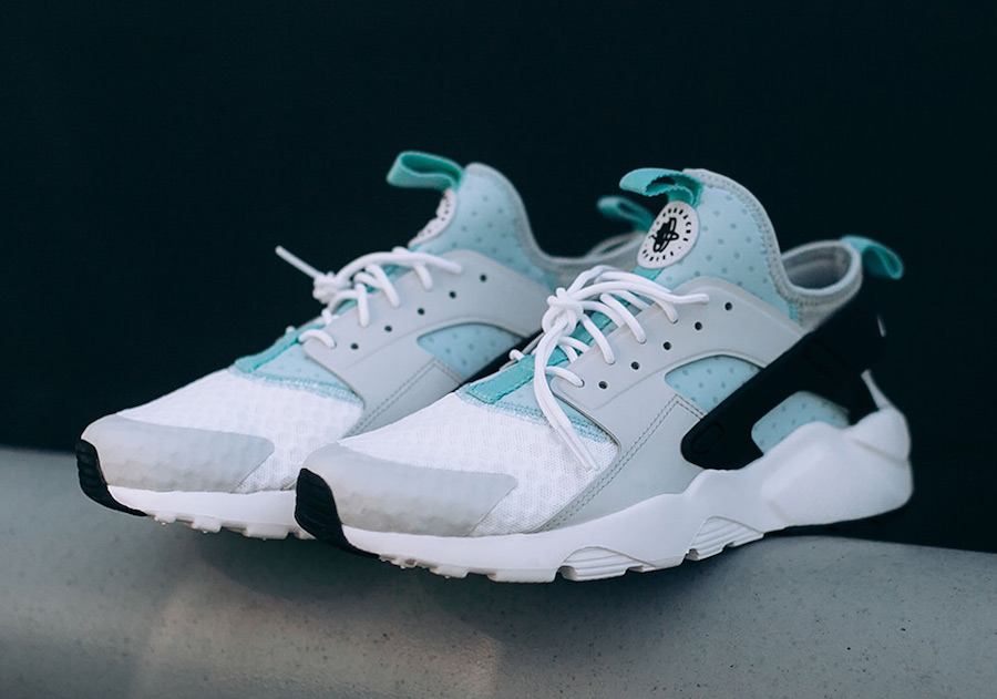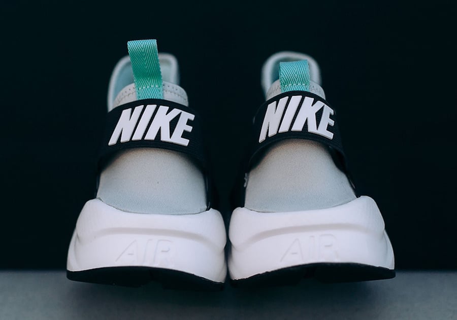 This Nike Air Huarache comes dressed in a Pure Platinum, Black and Igloo color combination. Looking closer you can see that they feature perforated foam and mesh across the uppers with an elastic strap and rubber cage. The base features a mixture of the aforementioned colors while Black lands on the heel counter. Finishing the look is White on the midsole which extends across the outsole.