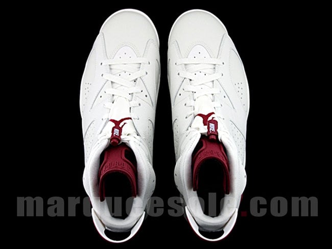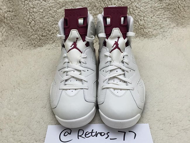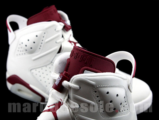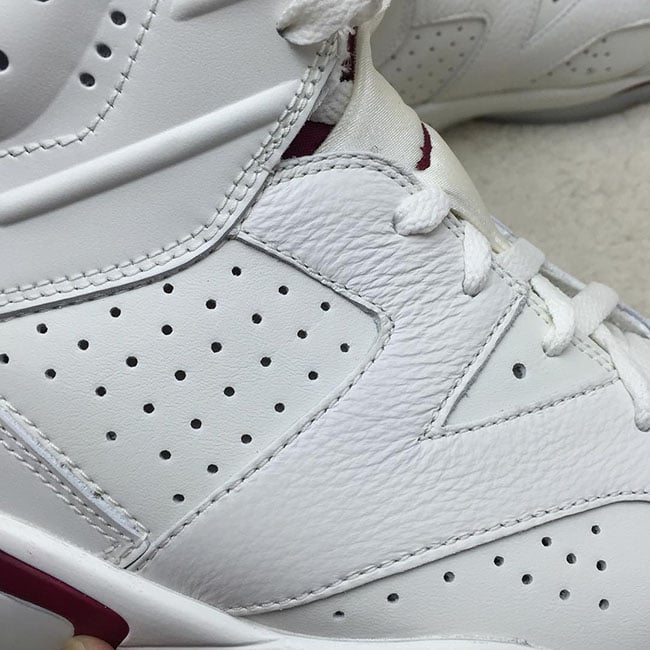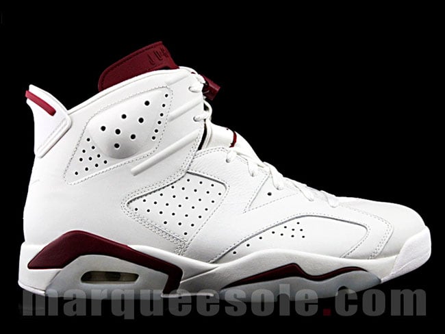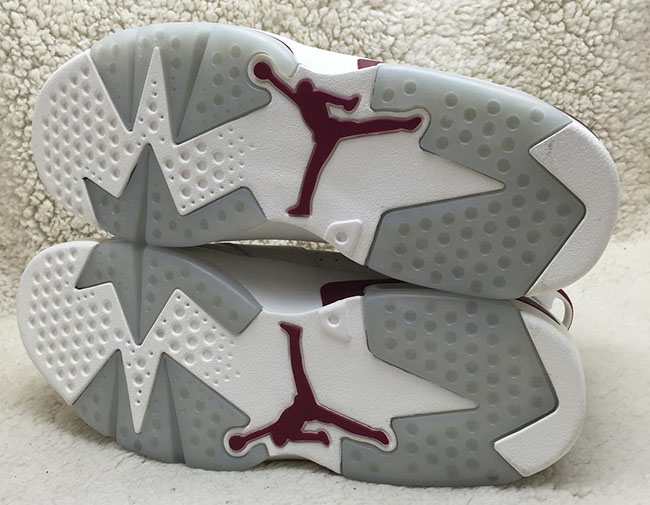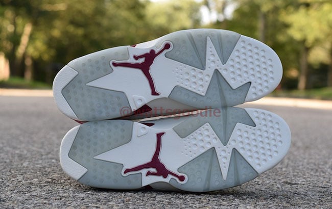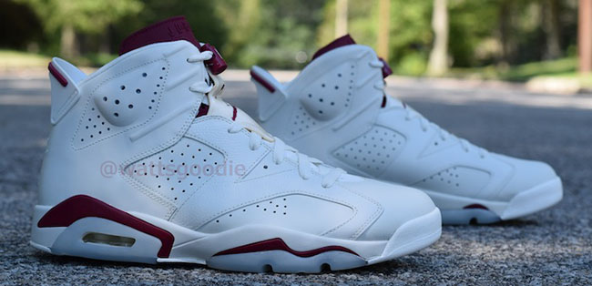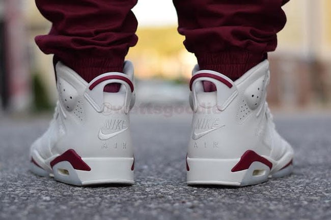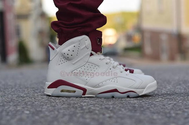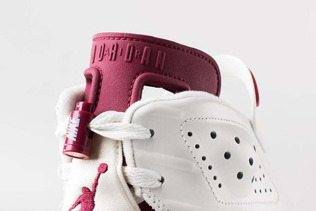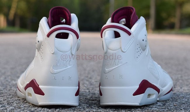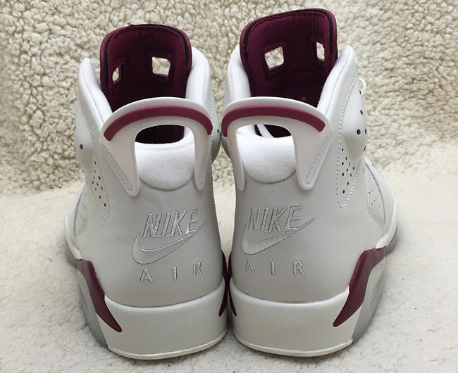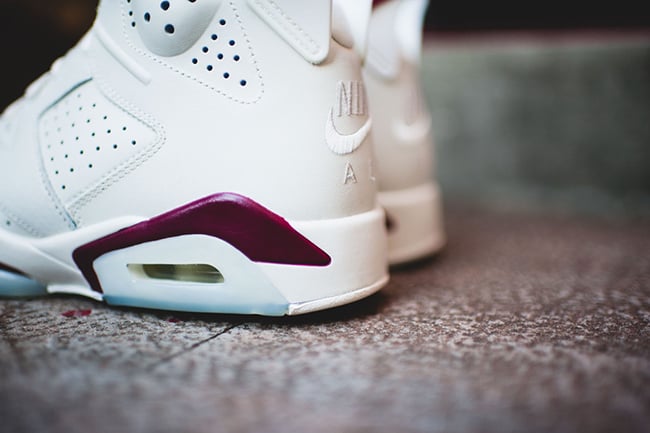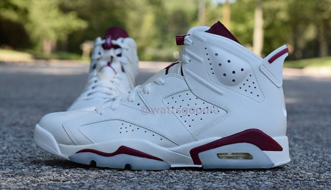 The Maroon Jordan 6 will feature a white upper with hits of perforation on the paneling. Maroon accents line up on the midsole, tongue and heel tab and Jumpman logo feature on the tongue, sole and insole. Other details include a translucent outsole while the biggest news here is Nike Air branding will return on the heel and insole.