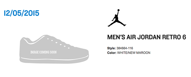 Update: The official release date for the Maroon Nike Air Jordan 6 is December 5th, 2015 which has been confirmed by J23App.