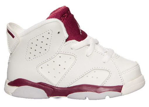 Update: We have given you plenty of looks at the Air Jordan 6 ‘Maroon’ that will release this weekend, but today we give a you closer look at the adult, gradeschool, toddlers and preschool releases. Let us know if you plan on picking up pairs for the family.