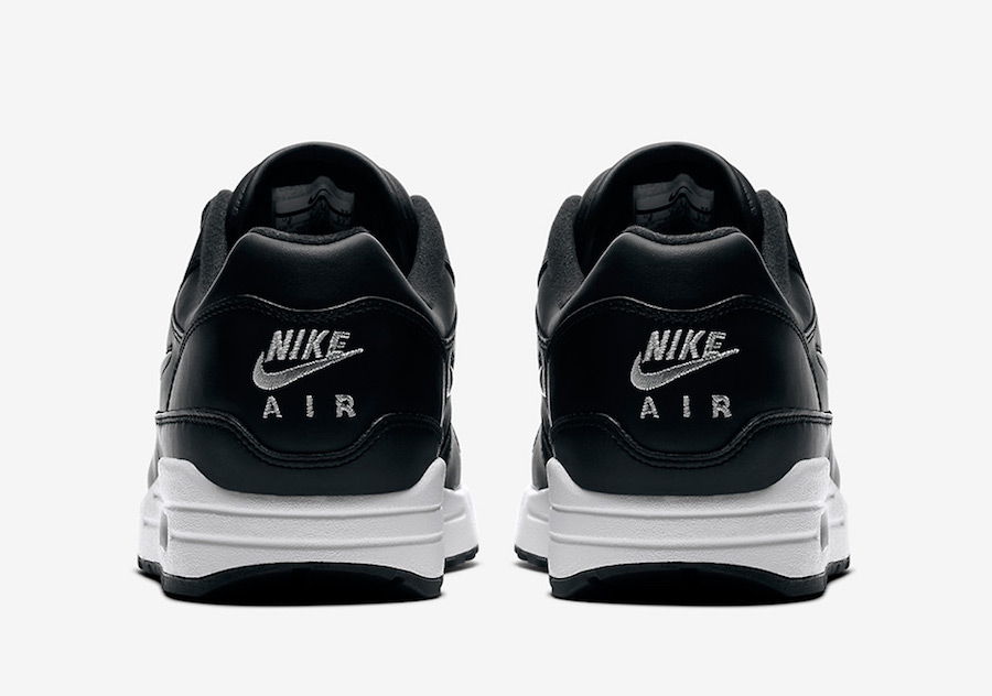 This Nike Air Max 1 comes dressed in a Black, White and Metallic Silver color combination. Across the uppers is the use of Black which is constructed with premium leather. Giving them some pop is the use of Metallic Silver which lands on the Jewel Nike Swoosh. Other details include White on the tongue and heel branding and midsole while Black covers the outsole.