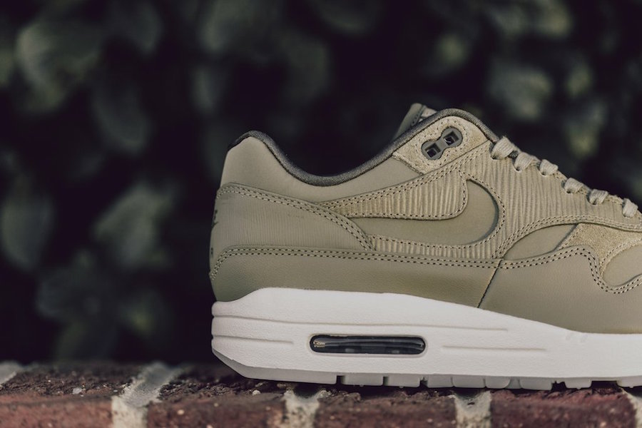 As you can see this Nike Air Max 1 comes dressed in a Neutral Olive and Medium Olive color combination. Constructed with a mixture of leather and suede, Gold detailing is spotted along with a milky translucent outsole. Completing the look is White running across the midsole.