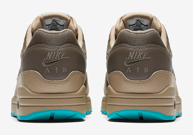 This Nike Air Max 1 features a Ridgerock, Khaki and Turbo Green color combination. Featuring Khaki tumbled leather around the toe box that extends across the mudguard and heel, Dark Brown accents the uppers which is constructed with suede, mesh and leather. Finishing the look is Turbo Green on the Nike Swoosh, tongue branding and outsole.
