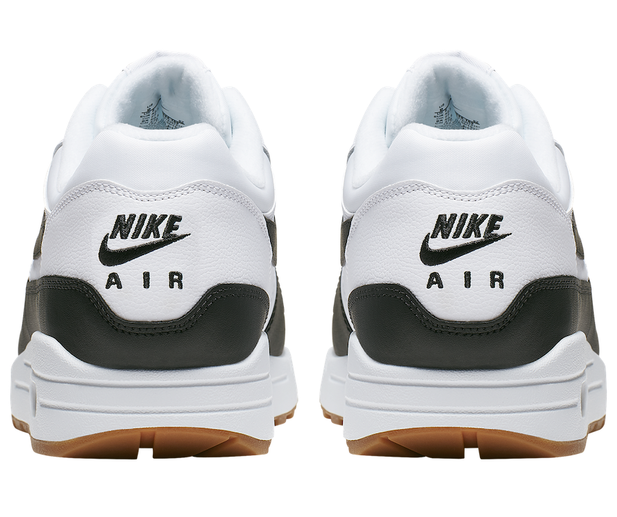 Looking closer this Nike Air Max 1 comes with White mesh on the base while White tumbled leather is applied to the overlays. In addition we have Black tumbled leather on the toe box and smooth leather in Black on the Swoosh and mudguard. Other details includes a White midsole and Gum rubber outsole.