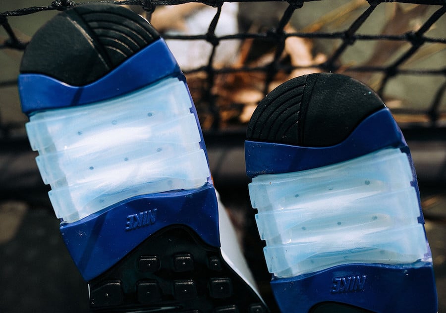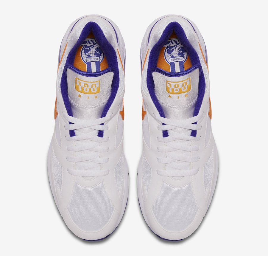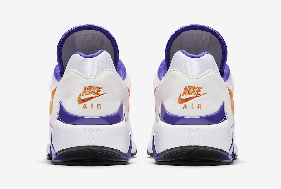 This Nike Air Max 180 features a White, Bright Ceramic and Dark Concord color combination. As you can see they feature a predominate White across the uppers while Dark Concord lands on the liner, around the heel and Air unit. Other details includes Bright Ceramic on the Nike Swoosh located on the panels and tongue branding while Black covers the outsole to complete the look.