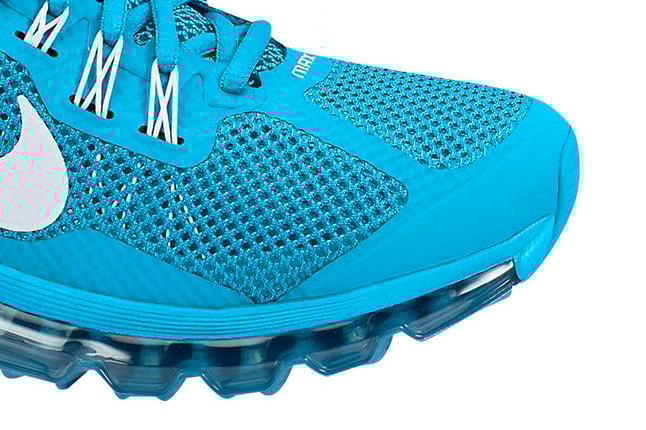 The Nike Air Max 2013 collection continues with a new colorway, neo turquoise, black and white.