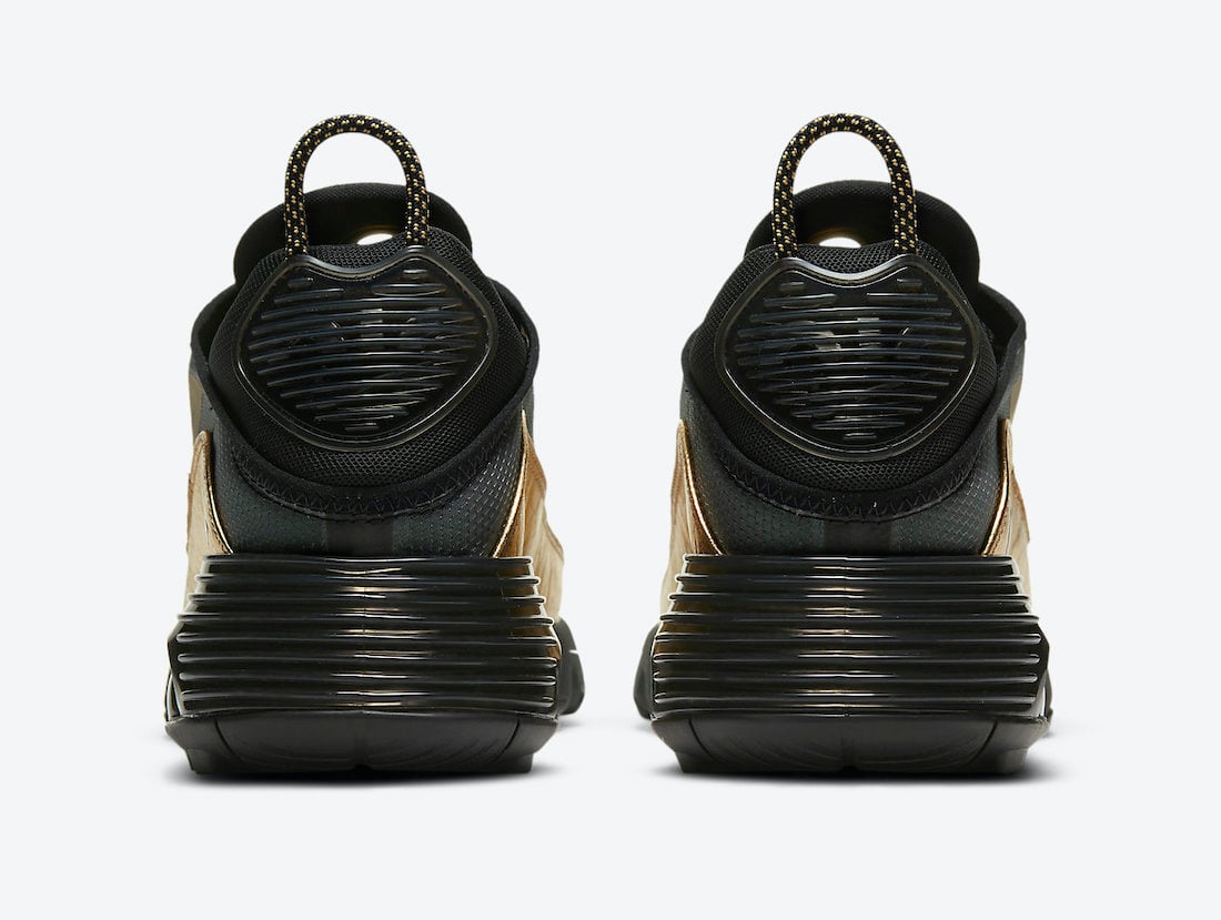 Looking closer this Air Max 2090 features Black on the base while Gold foil is applied to the mudguard while Gold just outlines the Swoosh logo. Following we have a Gold Swoosh lace dubrae while Black covers the midsole and rubber outsole.