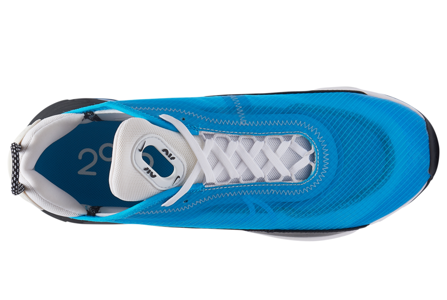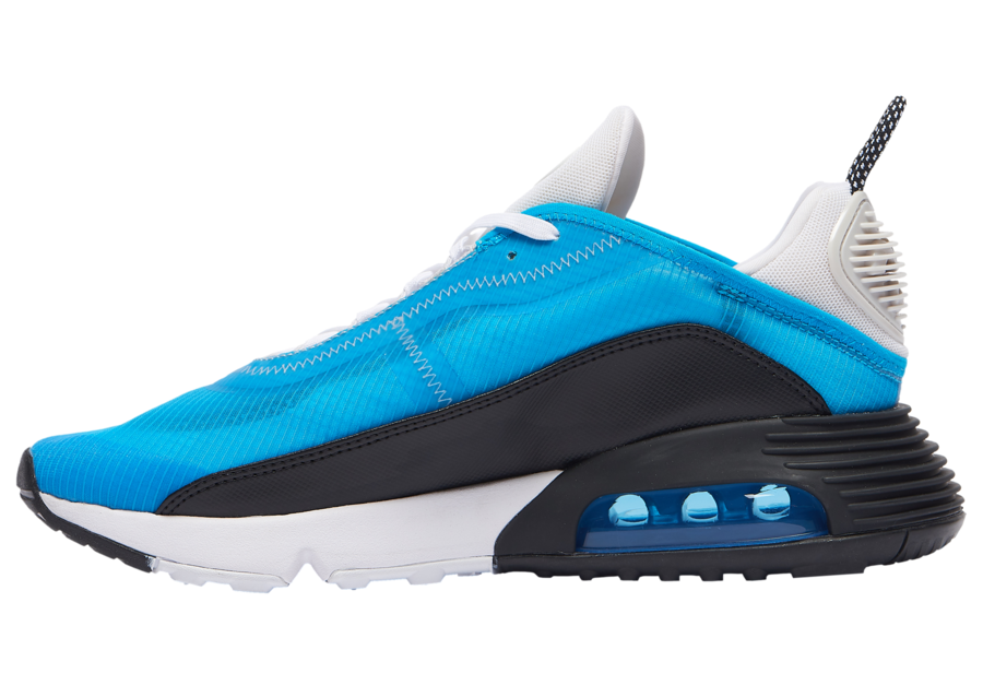 This Nike Air Max 2090 features a Blue transparent mesh across the upper while Black textile leather runs across the mudguard. Following we have White mesh on the tongue and Blue placed within the Air Max unit. Other details includes a Black and White midsole and rubber outsole.