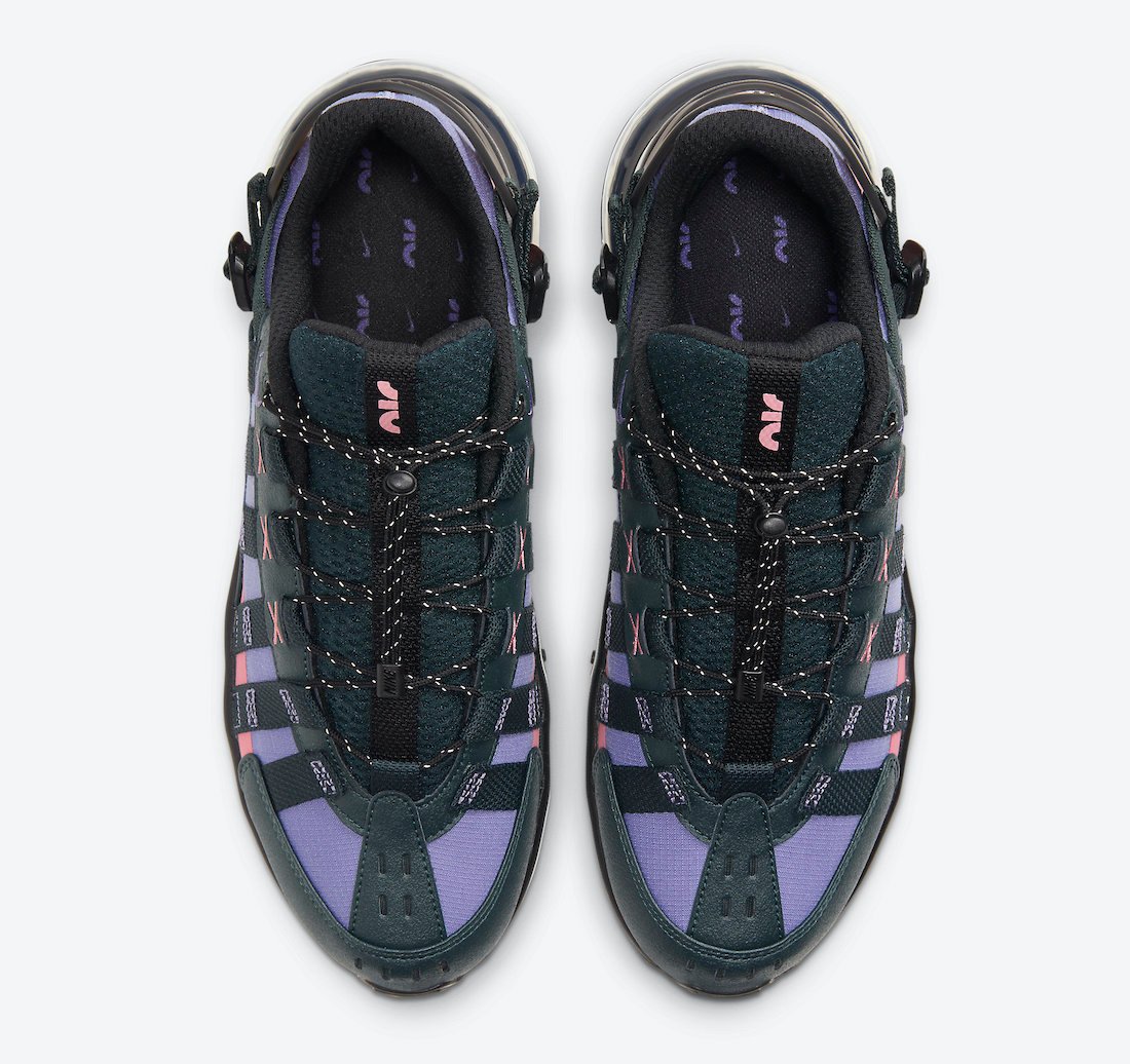 Featuring a Seaweed, Desert Berry and Dusty Amethyst color combination. Utilizing a build similar to what we see from ACG, it comes constructed with ripstop across the upper, reinforced leather on the overlays and a TPU heel counter with adjustable webbing straps. Following is toggle lacing system, Air Max 270 React midsole, nylon webbing and a rugged outsole.