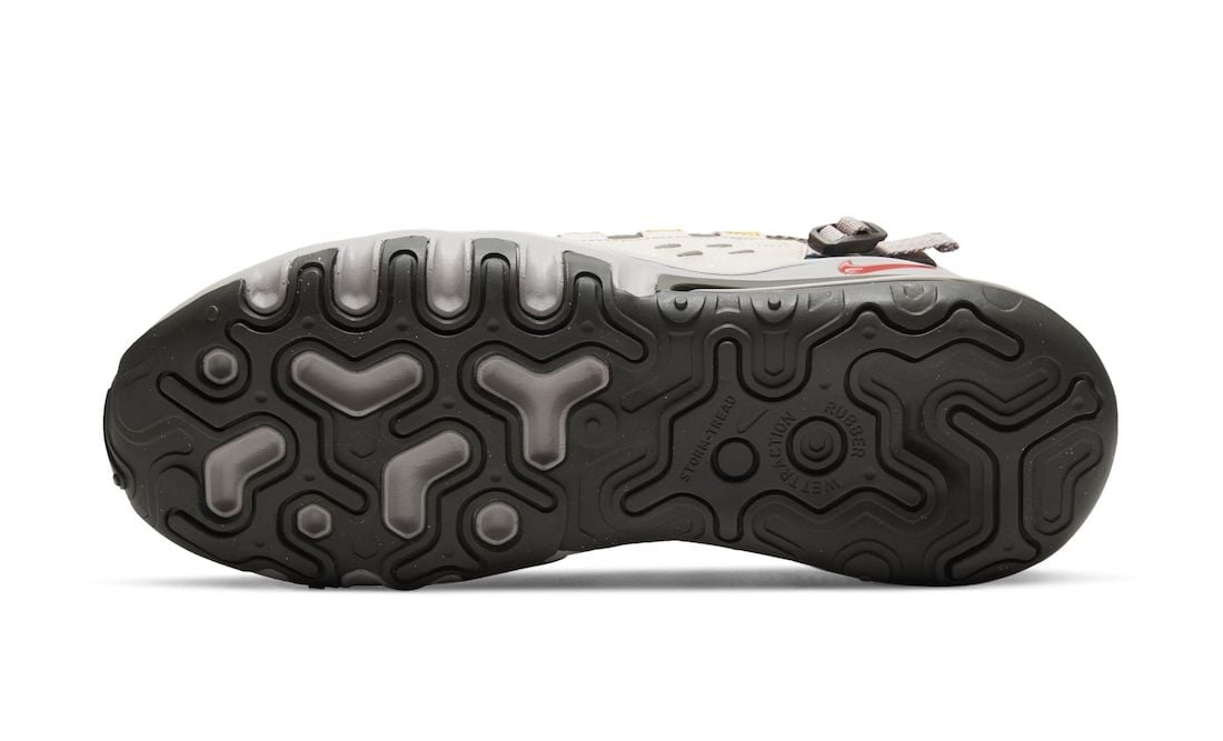 Looking closer this pair comes dressed in a Light Orewood Brown, Chile Red and Newsprint color combination. Utilizing ripstop on the upper, reinforced leather on the overlays and a TPU heel counter which has an adjustable webbing straps. Nylon webbing lands on the loop, toggle lacing system on top while a unique Air Max 270 React midsole and rugged outsole finishes the look.