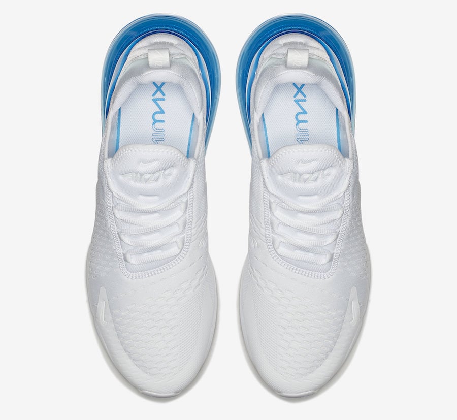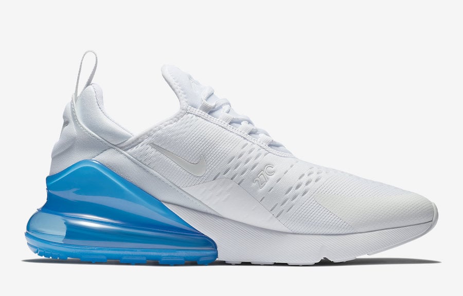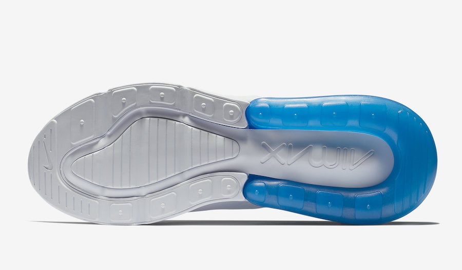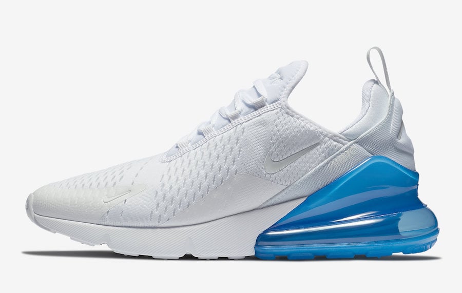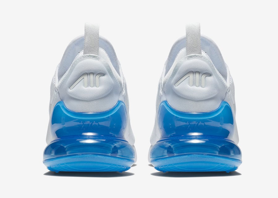The Nike Air Max 270 White Photo Blue is set to release on Air Max Day, March 26th at select Nike Sportswear retailers including online at Nike.com. Retail price will be $150. Below you can check out more images which will give you a closer look.