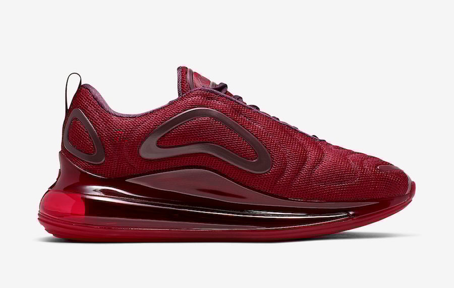 Nike has had an impressive year when it comes to color options of the Air Max 720 and it looks like the brand is not slowing down. One of the next releases comes dressed in University Red, Night Maroon and Team Red.